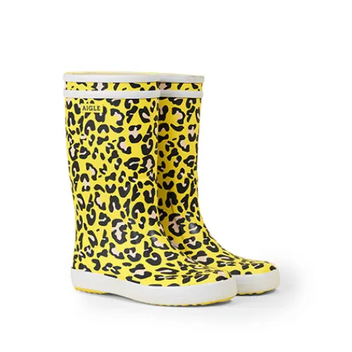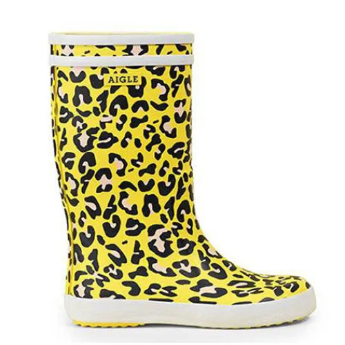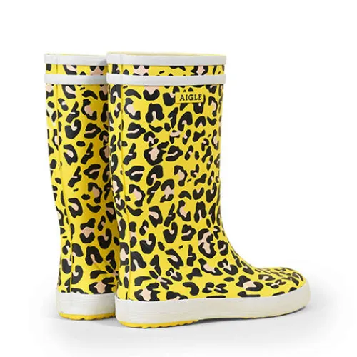 Flot gul farve med leopardprint på denne Aigle Lolly Pop model. Gummistøvlen er lavet i en skøn blød kvalitet, og har en udtagelig indersål.