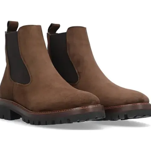 Lækker chelseastøvle med en overdel af ruskind med elastikpaneler på siderne af anklen samt en trækfane bagpå. Støvlen har et tætsiddende ankelhøjt skaft, og indvendig har den et tekstilfoer. Indersålen er komfortabel, og den kraftige og godt mønstrede gummisål med dekorativ stikningsrand er stødabsorberende med et godt vejgreb.