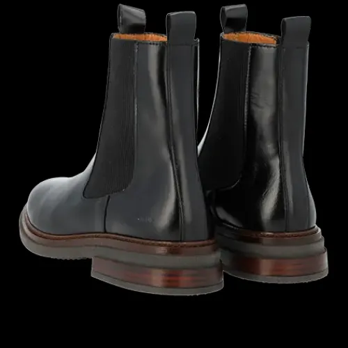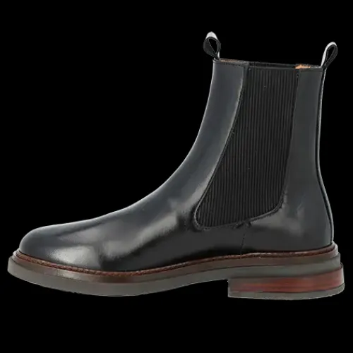 Lækker chelseastøvle med en overdel af glat skind med rund snude og elastikpaneler på siderne af anklen samt to trækfaner. Støvlen har et tætsiddende ankelhøjt skaft, og indvendig har den et kromfrit skindfoer, så fodklimaet er optimalt. Indersålen er komfortabel, og gummisålen med dekorativ stikningsrand er stødabsorberende med et fint fodfæste. Designet i Danmark og håndlavet med kærlighed i Portugal.