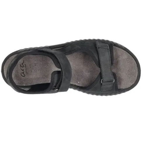 Blød og komfortabel Avio-s damesandal med en overdel af nubuck. Justeres og lukkes med to velcroremme over forfod og vrist. Den komfortable indersål har Aras velkendte High Soft-teknologi, som gør sandalen dejlig at have på hele dagen. Blød og fleksibel ydersål.