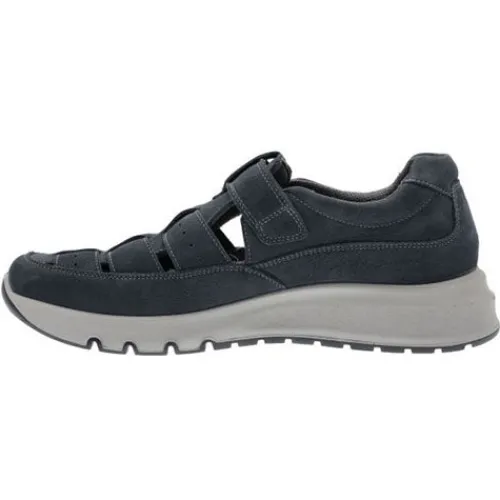 Semiåben Ara sko af nubuck, hvor overdelen består af en bred fastgjort pløs med fire tværgående remme, der danner huller ind til foden og dermed giver luft til tæerne. Den øverste rem har velcro, så du nemt kan træde i og ud af skoen. Åbningen er polstret for øget komfort, og den udtagelige indersål er blød og giver god komfort. Ydersålen er fleksibel og giver foden en god bevægefrihed.