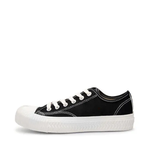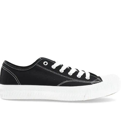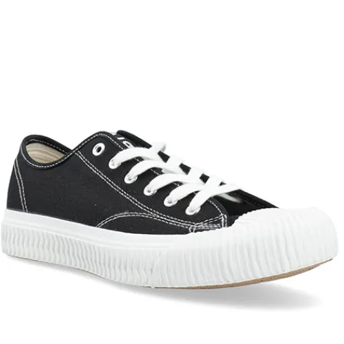 Klassisk sort sneakers med snøre med hvid gummisål.
