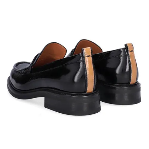 Lækker Venice pennyloafer med en overdel af lakskind dekoreret med en lysebrun detalje og trækfane af lakskind på hælen. Skoen har et blødt skindfoer, og ydersålen er stødabsorberende med et fint fodfæste.