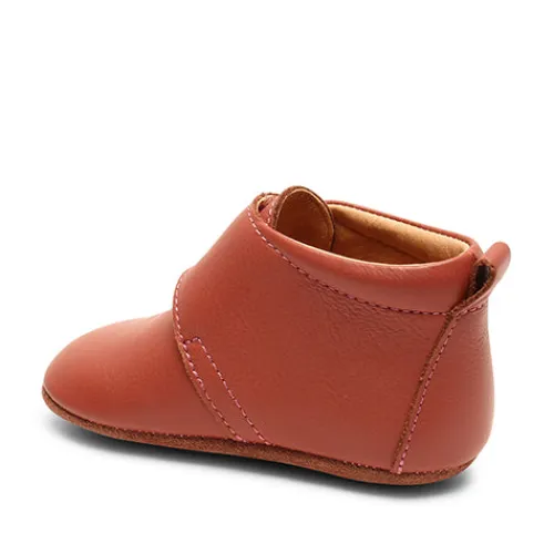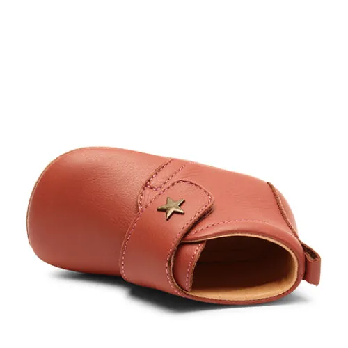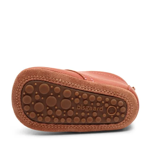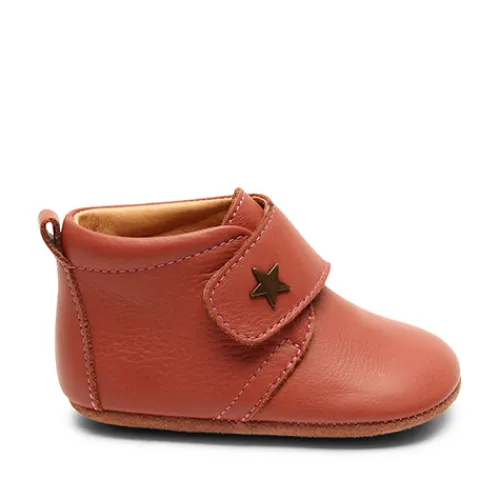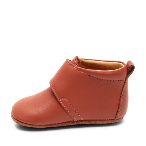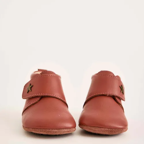 Superblød og behagelig hjemmesko med velcrorem over vristen og fast hælkappe. Indvendig er der blødt skindfoer, så den er meget behagelig for barnet at have på. Sålen er i ruskind med gummifelter.