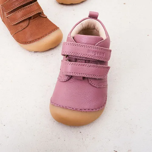 Lækker Carter barfodssko med en overdel af LWG-certificeret glat skind. Skoen lukkes med to velcroremme, og en trækfane på hælen gør det nemmere at få skoen på. Åbningen er polstret for øget komfort, støtte og beskyttelse, imens den brede tåboks giver god plads til tæerne og fremmer en sund fodstilling. Indersålen kan tages ud. Skoens flade sål uden hældrop fremmer en naturlig gang og giver en forbedret ankelstabilitet samt balance. Den fleksible gummiydersål er stødabsorberende med et godt fodfæste. En supergod begyndersko, der vil hjælpe med at give det sidste skub til at løbe rundt.