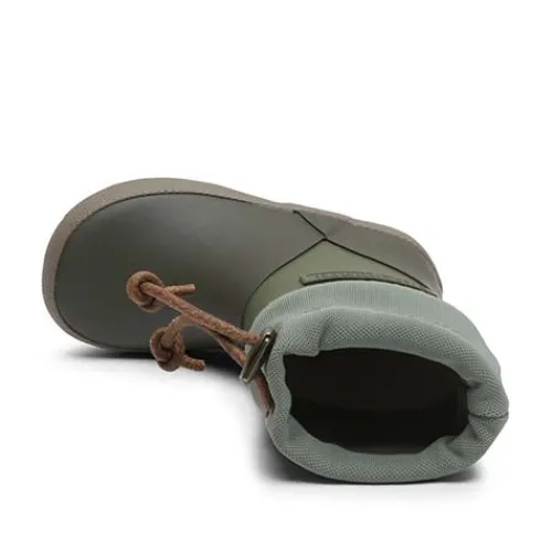 Lækker Dark Forest gummistøvle med en vandtæt overdel af naturgummi. Åbningen er kantet med en bred løbegang og har ruskindssnøre med metalstopper. Støvlen har en normal/smal pasform. Indvendig har gummistøvlen et bomuldsfoer, og den udtagelige indersål er beklædt med bomuldsfoer. Den fleksible gummiydersål er stødabsorberende med et fint fodfæste