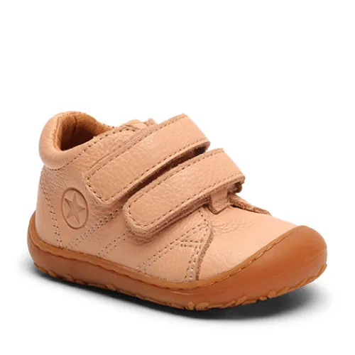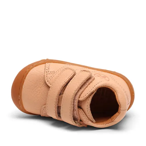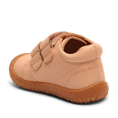 Lækker Hale v sko med en overdel af kromfrit glat skind med snuden forstærket med gummi. Skoen lukkes med to velcroremme, og åbningen er polstret for øget komfort, støtte og beskyttelse. Indvendig har støvlen et foer af kromfrit skind, og den udtagelige indersål beklædt med kromfrit skind er blød og åndbar. Den fleksible gummiydersål er stødabsorberende med et godt fodfæste. En supergod begyndersko, der vil hjælpe med at give det sidste skub til at løbe rundt.