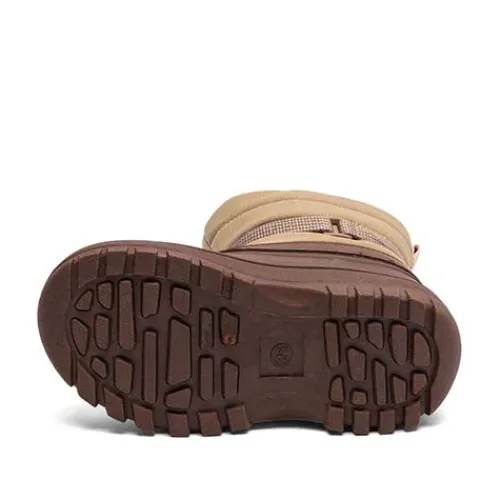 Supersej og varm Pacson vinterstøvle med en overdel bestående af et skaft af tekstil med en rem af glat skind forneden og en vandtæt sko af gummi. Støvlen lukkes på ydersiden af læggen med en bred velcroflap samt rundt om anklen med en justerbar velcrorem med en påsyet skindlap, og en trækfane bagpå gør det nemt at træde i støvlen. Indvendig har støvlen et blødt og varmt uldfoer, som er naturligt varmeregulerende, og den uldbeklædte indersål kan tages ud. Den kraftigt mønstrede gummiydersål er stødabsorberende med et godt vejgreb selv på glatte underlag. Pacson er en innovativ vinterstøvle, der let følger fodens bevægelser – perfekt til vinterens mange eventyr lige fra gåture i skoven til hverdagens aktiviteter og leg.