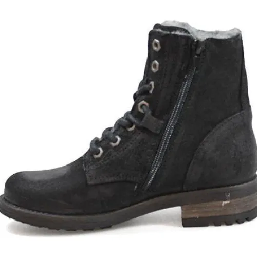 Varm støvle fra Bullboxer med både snørebånd og lynlås. Pelsfoer holder fødderne varme.
