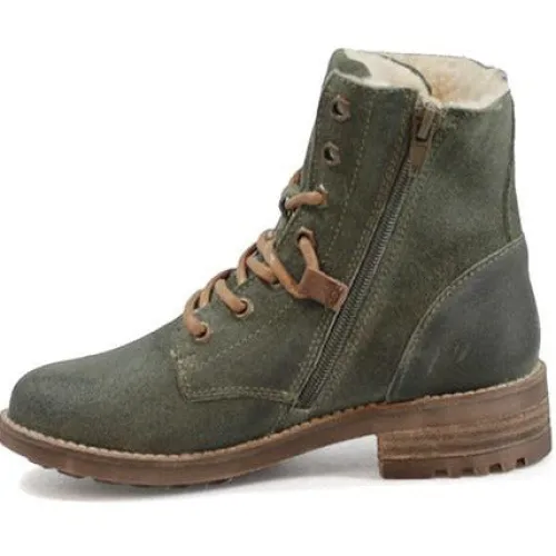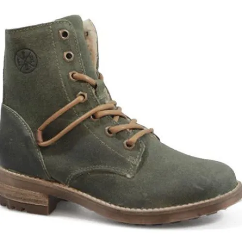 Varm støvle fra Bullboxer med både snørebånd og lynlås. Pelsfoer holder fødderne varme.