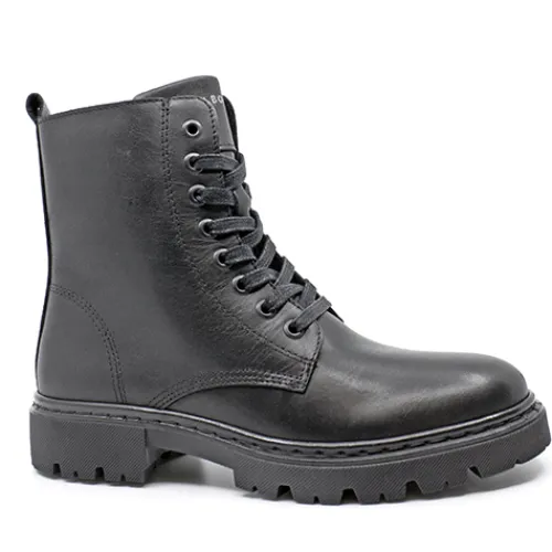 Sej biker vinterstøvle, med grove såler. Støvlen har også to lukke metoder, En lynlås i indersiden og snørebånd op over vristen.