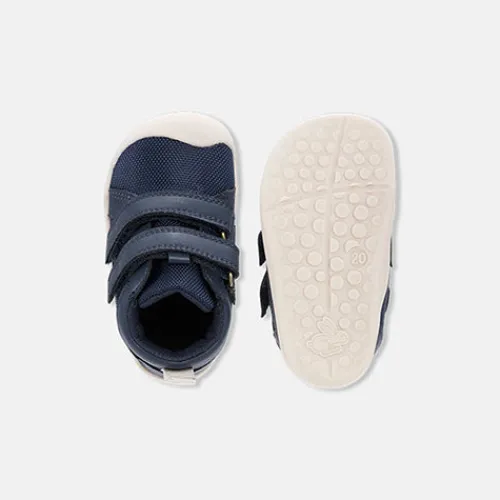Mio er en let og blød begyndersko med et sporty udtryk, designet til de første skridt. Overdelen er af tekstil og syntet, og skoen lukkes med to velcroremme over vristen, imens en trækfane på hælen gør det nemmere at træde i skoen. Indvendig er skoen foret med blødt og åndbart meshtekstil og udstyret med en vandtæt TEX-membran, der sikrer lune og tørre fødder i vådt vejr. Mio har samme gennemprøvede pasform som den ikoniske Petit, med plads til tæernes naturlige bevægelse og støtte omkring anklen. Åbningen er polstret for øget komfort, og en fast hælkappe og tåkappe giver øget stabilitet, støtte og sikkerhed. Indersålen kan tages ud, og den fleksible ydersål af TPR er stødabsorberende med en robust profil, der sikrer stabilitet og greb, selv på glatte overflader i koldt vejr. Ydersålen fortsætter op over snuden, som dermed er slidstærk og ideel til de små, der stadig kravler, men også til dem, der øver sig på at stå og gå. Skoen er vegansk og fri for skadelig kemi.