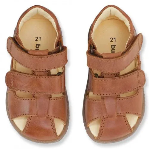 Sandalen lukkes med to velcroremme over vristen, og velcrolukningen kan afkortes og dermed give en justerbar pasform, så skoen kan tilpasses barnets fod perfekt, hvilket resulterer i optimal komfort og støtte. Åbningen er om hælen polstret for øget komfort og beskyttelse, imens en fast hælkappe og de lukkede sider både giver ekstra støtte og sikrer, at sandalen sidder godt til på foden. Den lukkede tå beskytter de små tæer mod stød, imens den brede pasform giver plads til tæernes naturlige greb. Det gør sandalen perfekt til barnet, som har brug for både stabilitet og bevægelsesfrihed. Indersålen er beklædt med skind, og den fleksible og stødabsorberende TPR-ydersål giver en ekstra blød og fleksibel fornemmelse, perfekt til de små fødder, der udforsker verden.