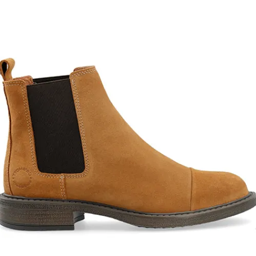 Lækker Stina chelseastøvle i ruskind. Har en samlingsdetalje over forfoden samt de klassiske elastikpaneler på anklen, og øverst bagpå finder du en praktisk trækfane dekoreret med et rundt Ca’Shott-emblem af metal. Den bløde indersål kan tages ud, og ydersålen har varierende mønster for bedre fodfæste. Dansk design, lavet i Portugal.
