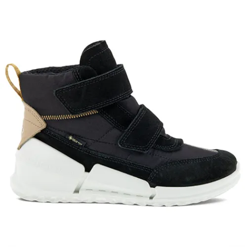 Retrostil kombineret med varme og innovativ komfort hele dagen i ECCO BIOM K1. Børn vil elske denne ankelstøvles smarte udtryk med quiltet tekstil og lækkert ruskind samt spændende farveaccenter. Fødder i voksealderen hjælpes til at bevæge sig mere naturligt takket være BIOM® NATURAL MOTION®-teknologi, som samtidig giver en anatomisk, tætsiddende og behagelig pasform. Vandtæt GORE-TEX-foer holder fødderne tørre og veltilpasse i al slags vejr, mens sålen er fleksibel, let og slidstærk og har et unikt mønster for at sikre et godt fodfæste.