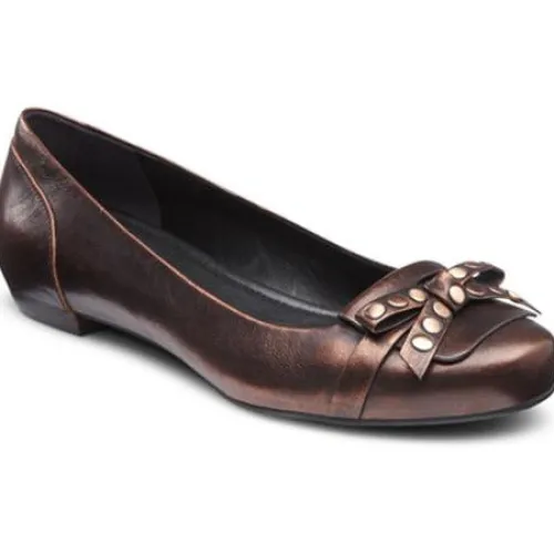 Super flot ballarina sko i metalisk skind. Flotte detaljer henover forfoden. Skind både udvendig og indvendig.