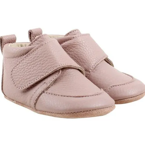 Blød babysko fra En Fant med bred velcro over foden og skind indvendig.