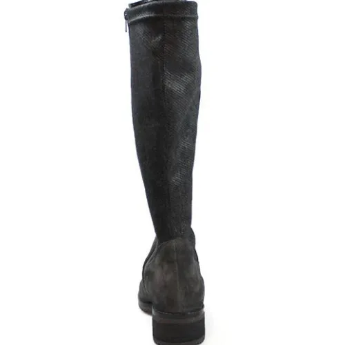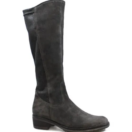 Smart højskaftet støvle fra Gabor i flot grå farve. Støvlen har isat tekstil med stretch på det begeste af skaftet, så skaftebredden er fleksibel. Den indvendige lynlås går hele vejen igennem på støvleskaftet.