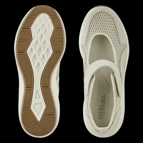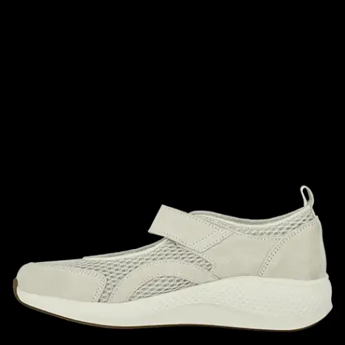 Dejlig og åndbar Dolphin Dagmar sko i en sporty version af Mary Jane-stilen. Overdelen er af åndbart meshtekstil og ruskind med en velcrorem over vristen og en trækfane på hælen. Indvendig har skoen DRI LEX ECO-foer, der er fremstillet af genanvendte plastikflasker. Foret sikrer, at dine fødder kan ånde, og holder dem tørre hele dagen. Med vidde H er der plads til den bredere fod, og den polstrede 4,5 mm EnergySole Shape-indersål støtter svangen og giver en god stødabsorbering. Indersålen kan tages ud og erstattes med din egen. Den lette og fleksible ydersål er stødabsorberende med et fint fodfæste, og den giver et diskret og feminint løft.
