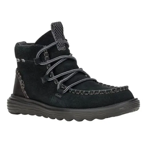 Dejlig og let Reyes Suede vinterstøvle med en vandafvisende overdel af ruskind med smarte kontrastsyninger. Støvlen er en slip on-model med en ikkejusterbar elastiksnøre og trækfane både for og bag, så det er nemt at træde i støvlen. OBS! Hælen er bred og meget rummelig. Åbningen er polstret, og indvendig har støvlen et blødt, let foer. Den udtagelige indersål er åndbar, støddæmpende og komfortabel, og den fleksible ydersål med gummi under forfoden er stødabsorberende med et godt fodfæste.