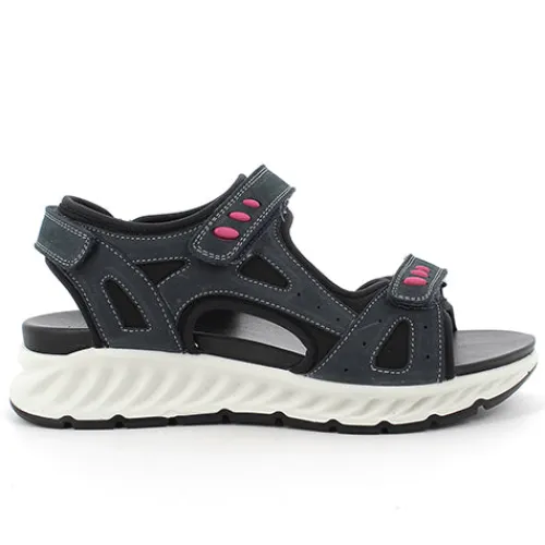 Blå Imac sandal med 3 velcroremme til justering. Bløde og fleksible såler.