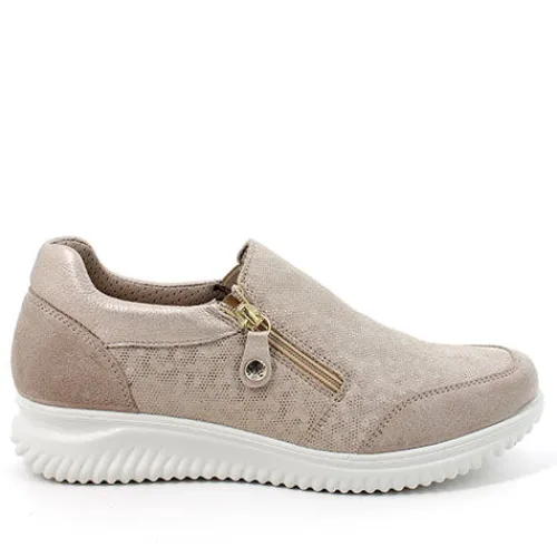 Denne Light Style sko fra Imac er let, fleksibel, åndbar og anatomisk med svangstøtte og ekstra støtte i hælen. Overdelen er blødt læder med ruskindsdetaljer på snude og hæl, og åbningen er polstret på hæl og sider. Skoen lukkes med en lynlås på ydersiden, og sammen med elastikbåndet i venstre side af åbningen er skoen meget nem at tage af og på. Skoen har ekstra vidde, så der er god plads til din fod, og skoen bliver ekstra komfortabel med den udtagelige indersål af skind og den fleksible ydersål.