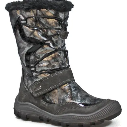 Super let og fleksibel Imac støvle med vandtæt ImacTEX-membran. Skaftet på støvlen er lavet i sølvmelleret tekstil og med stjerne i lak, samt isat elastik, der får skaftet til at sidde til på benet. Indvendig er der varmt foer. Lynlås på indvendig side af skaftet og velcro over vrist.