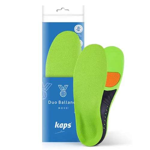 Duo Ballance indersålen er en komfortsål med stødabsorbering og svangstøtte. Sålen er udført af polyurethanskum (PU) belagt med blødt striktekstil, og den har gelépuder under hælen og forfoden samt en polyurethan-profil i svangen. Kombinationen af polyurethanskum og gelépuder sikrer en blød og jævn vægtfordeling under foden, selv på hårde overflader. Den formstøbte sål støtter svangen på langs og holder foden i en korrekt position, imens hælkoppen stabiliserer bagfoden, når man står og går. Sålen er stor i størrelsen.