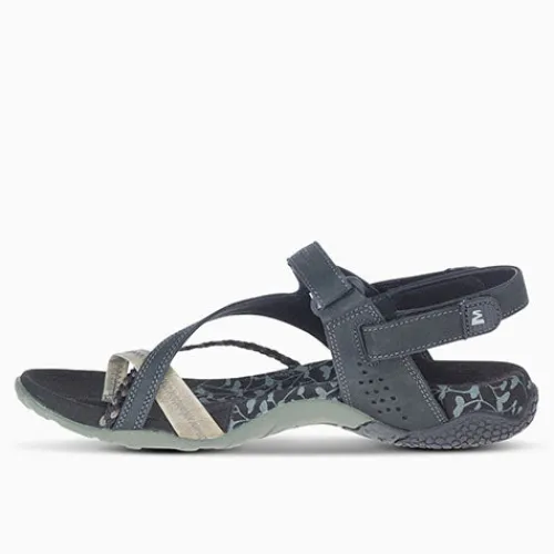 Sød og fleksibel Siena sandal med en overdel af nubuck. Sandalen reguleres og lukkes med to remme med velcro over vrist og ved hæl, og hælremmen kan tages helt af. Enderne af velcroremmene er belagt med gummi. Sandalen har tårem og to remme over forfoden, hvoraf den ene er af flettet tekstil. Ydersålen er stødabsorberende og giver dig et godt fodfæste.