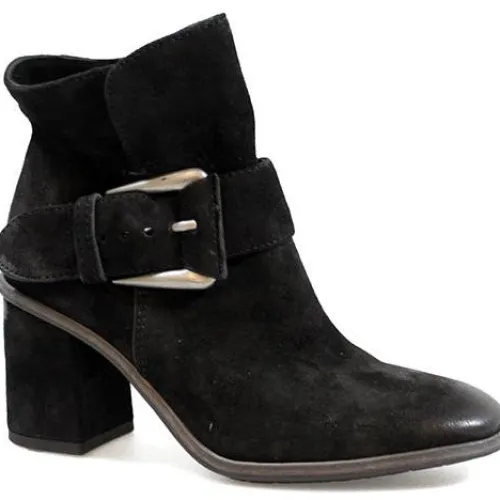 Super skøn støvle fra Mjus i blødt ruskind. Støvlen har en chunky hæl og et stort metalspænde. Indvendig er der skindfor og dæksål i skind.
