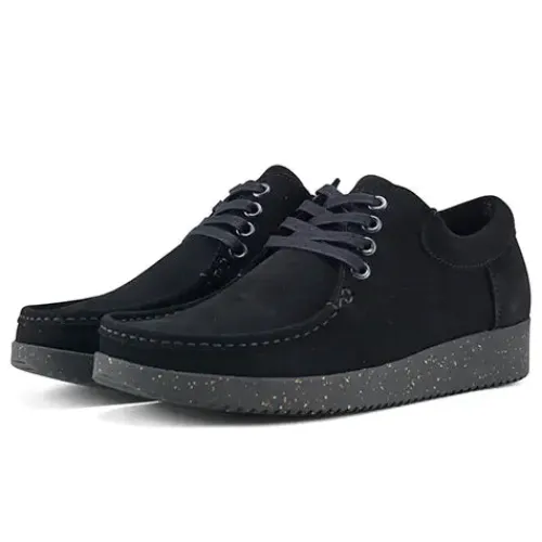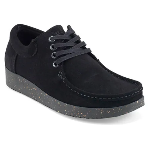 Blød, fleksibel og komfortabel Anna sko fra Nature med bomuldssnørebånd og mokkasinsyning på forfoden. Overdelen er af vandafvisende ruskind, og sålen består af ergonomisk naturgummi med korkrester.