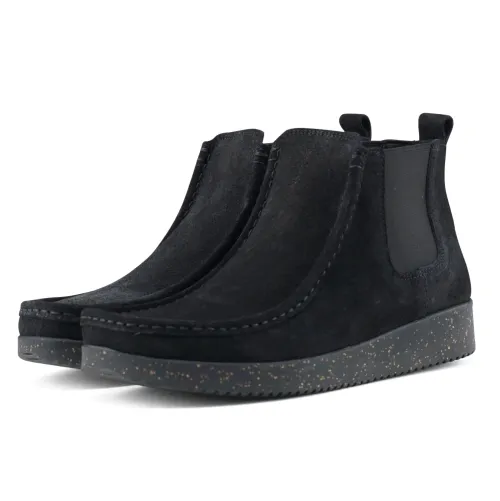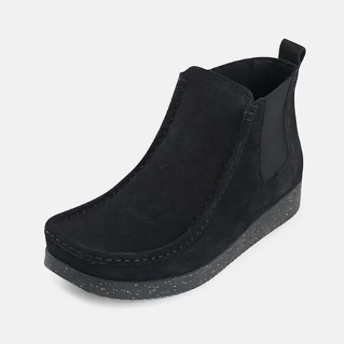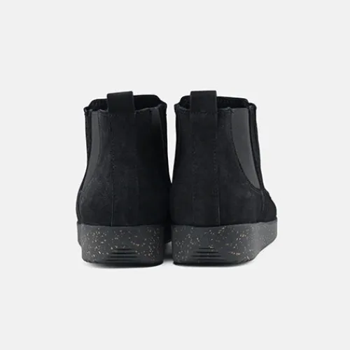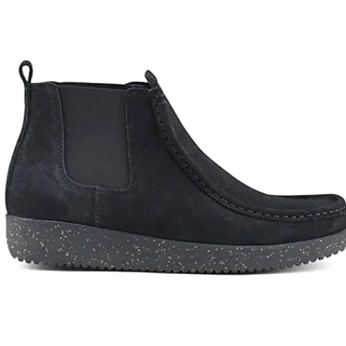 Superlækker Ester ankelstøvle i Chelsea-stil med en overdel af blødt, kromfrit ruskind, lavet til komfort og alsidighed. Støvlen er en slip-on-model med elastiske paneler på begge ydersider for en nem pasform, og en trækfane bagpå gør det nemt at træde i støvlen. Mokkasinsyningen på forfoden og forsiden af støvlen er håndsyet. Støvlen er foeret med (OnSteam®), og komforten understreges af den bløde indersål. Ydersålen består af ergonomisk naturgummi med korkrester, hvilket giver et karakteristisk udtryk samt gør støvlen fleksibel, stødabsorberende og komfortabel med et godt fodfæste. Designet i Danmark, produceret i Portugal.