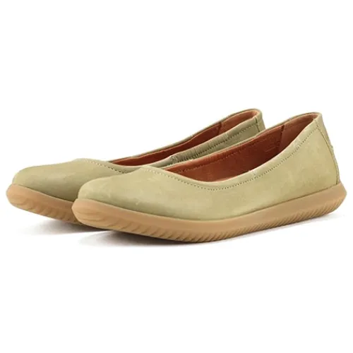 Fin Marie ballerinasko med en overdel af blød, vegetabilsk garvet nubuck, som er bio-nedbrydelig. Indvendig er skoen foret med OnSteam®, og den udtagelige indersål er også af OnSteam®, som er Nature Footwears mikrofibermateriale, der både føles som og har de samme egenskaber som læder, men er lettere, blødere og mere fleksibelt. Det kromfrie OnSteam®-materiale absorberer 6 gange så meget fugt som læder, regulerer temperaturen og er 100 % åndbart. Den fleksible ydersål med dybe riller er af naturgummi og giver et godt fodfæste.