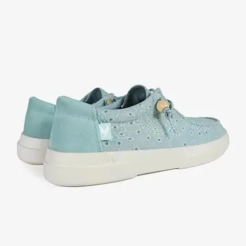 Lækker Kila Wallabi sko med en åndbar og smukt broderet overdel af 100 % bomuld samt ruskind på hælen med en moc toe-syning på forfoden. Skoen er udstyret med en elastisk snøre, som ikke skal bindes, og snørens ender er dekoreret med en træperle, som nemt kan tages af. Åbningen er polstret for øget komfort, og indvendig har skoen et blødt bomuldsfoer. Den ekstratykke, polstrede og udtagelige EVA-indersål beklædt med skind er åndbar og fugttransporterende og giver høj komfort hele dagen. Den fleksible og lette EVA-ydersål er stødabsorberende med et fint fodfæste. Her får du en superlet og komfortabel Wallabi-sko, som nem at tage af og på, og som holder dig cool hele sæsonen.