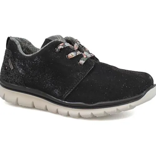 Super fin sko med glimmer og blomstrede snørebånd. Skoen har en kraftig tekstilforing og udtagelig dæksål i skind. 100% vandtæt med Goretex®-membran.