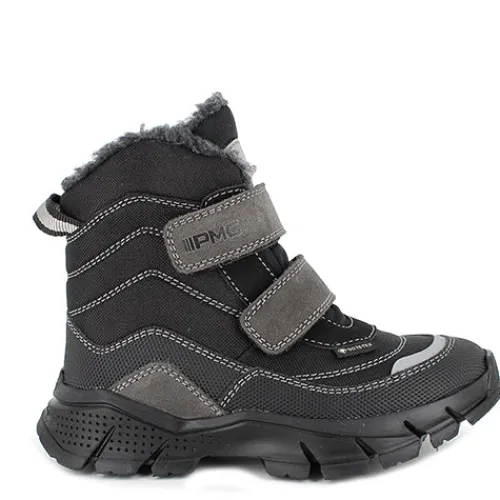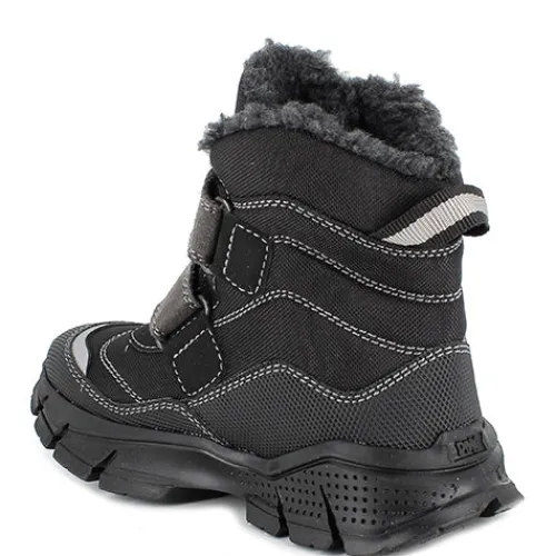 Smart og slidstærk støvle fra Primigi med spændende detaljer som bl.a. syninger, reflekser og en sporty ydersål. Overdelen er af tekstil med detaljer af syntet, og indvendig har støvlen et varmt foer og en åndbar og vandtæt Gore-Tex®-membran, så fødderne holdes lune og tørre. Støvlen lukkes med to velcroremme, og en trækfane bagpå gør det nemt at træde i støvlen. Indersålen kan tages ud, og den grove gummiydersål giver et rigtig godt fodfæste.