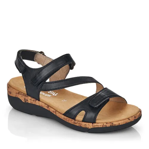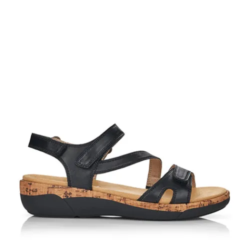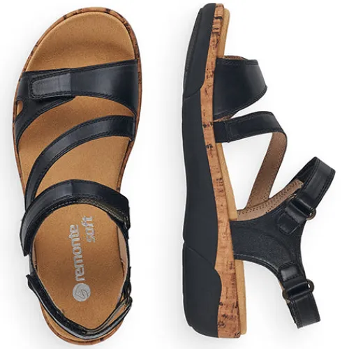 Fin og praktisk Remonte Soft sandal med tre velcroremme. Sandalen er lavet i skind og har en blød og fleksibel så.