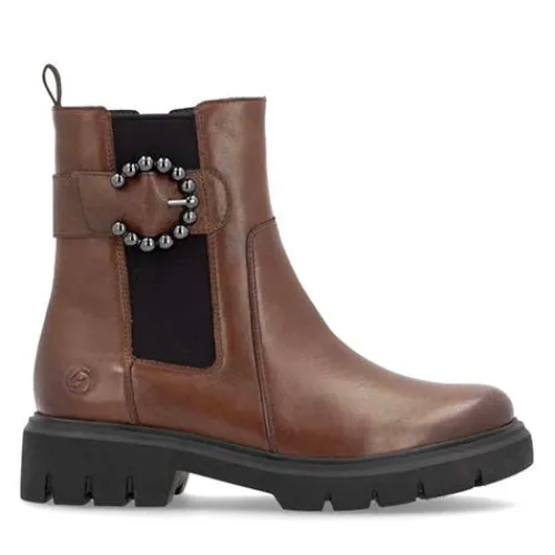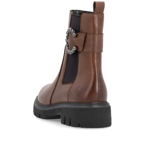 Lækker og let støvle perfekt til efteråret. Overdelen er af glat skind samt et elastikpanel på ydersiden af anklen dekoreret med en rem med et smart pyntespænde. Støvlen lukkes med en lynlås på indersiden af anklen, og en trækfane bagpå gør det nemmere at træde i støvlen. Komfortvidden giver lidt mere rummelighed om forfoden Indvendig har støvlen et let og lunt foer samt en udtagelig indersål beklædt med et lunt foer. Den kraftige ydersål er stødabsorberende med et godt fodfæste.
