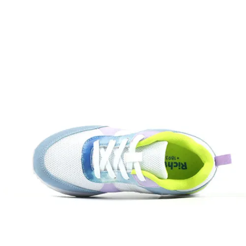 Hvid og lilla snøresko fra Richter med overdel i tekstil og syntet. Smarte detaljer i kontrastfarver.