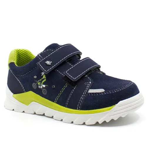 Smart blå velcro sko fra Ricosta med blink og motorcross rytter på siden. Praktisk velcro over foden.