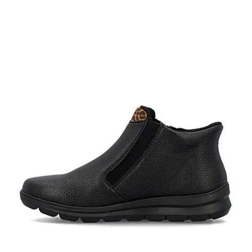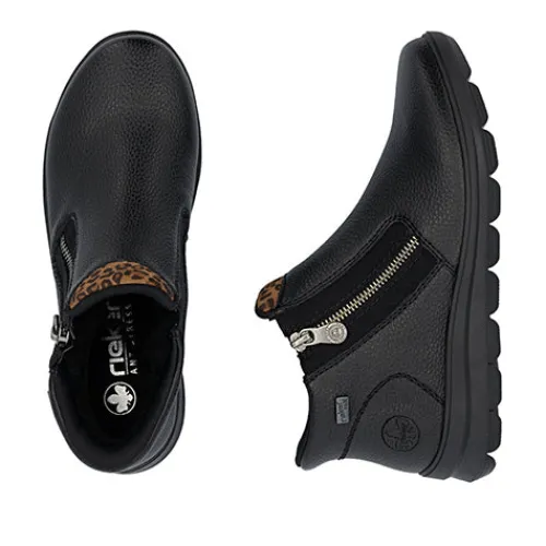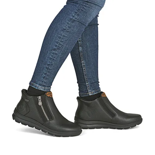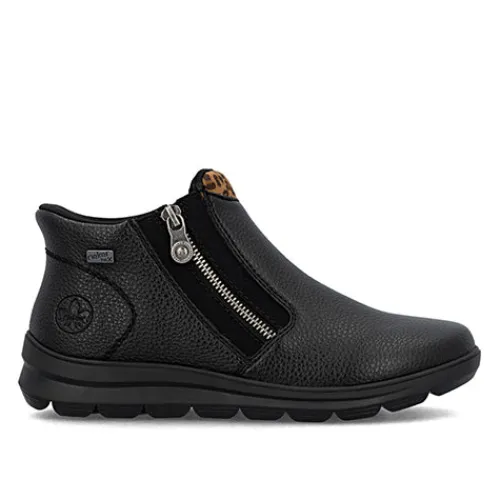 Smart Ready2GO støvle med en overdel af syntet med et elastikpanel på indersiden af anklen. Indvendig har støvlen et lunt foer, og sammen med en kraftigt vandafvisende RiekerTEX-membran holdes fødderne lune og tørre. Støvlen lukkes med en lynlås på ydersiden af anklen. Den udtagelige indersål er polstret, støddæmpende og komfortabel, og den fleksible gummiydersål er stødabsorberende med et godt fodfæste.