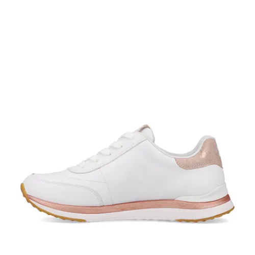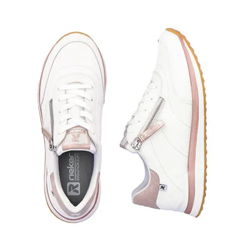 Flot Revolution sneaker med en overdel af glat skind og syntet, dekoreret med detaljer i rødguld. Skoen lukkes med snørebånd og lynlås, og åbningen er polstret for øget komfort. Den udtagelige indersål er polstret og komfortabel, og den stødabsorberende ydersål giver et fint fodfæste.