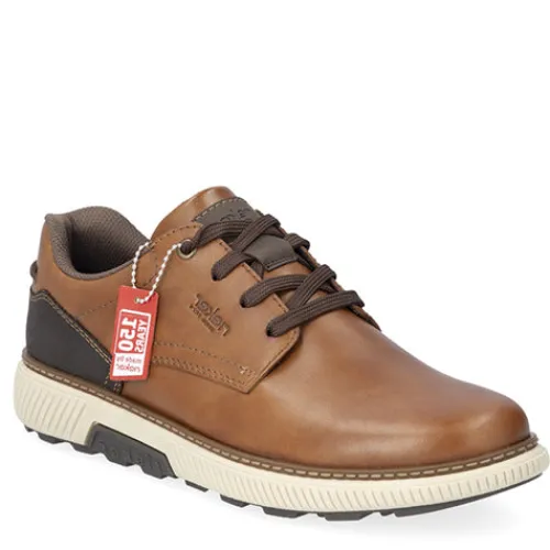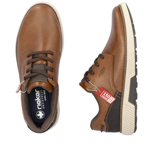 Flot og praktisk sko med en overdel af glat skind og en slidstærk syntetdetalje på hælen. Skoen lukkes med snørebånd, og et rundt elastikbånd bag på hælen kan bruges som trækfane, når man træder i skoen. Åbningen er polstret for øget komfort og støtte, og skoen er foret med tekstil. Den udtagelige Antistress-indersål er polstret og komfortabel, og med ekstra vidde om forfoden er der plads til den bredere fod. Skoen er let og fleksibel, og den stødabsorberende gummiydersål har et godt mønster og giver et godt vejgreb.