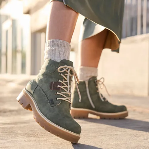 Dejlig vinterstøvle med en overdel af syntet. Indvendig har støvlen et varmt foer, og sammen med en kraftigt vandafvisende RiekerTEX-membran holdes fødderne varme og tørre. Støvlen justeres med snørebånd og lukkes med en lynlås på indersiden af anklen. Den udtagelige indersål er polstret, støddæmpende og komfortabel, og den kraftige gummiydersål er stødabsorberende med et godt vejgreb.