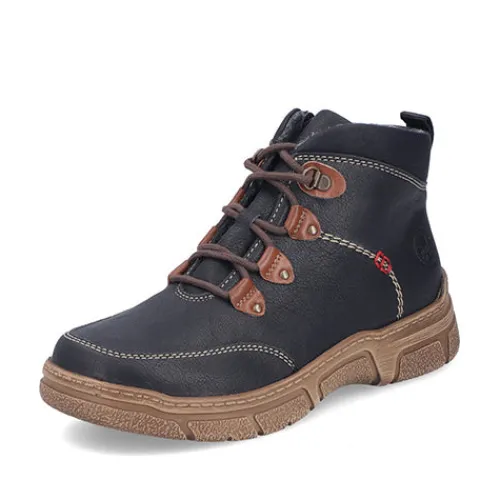 Dejlig støvle med en overdel af syntet med kontrastsyninger, og indvendig har støvlen et lunt foer. Støvlen justeres med snørebånd og lukkes med en lynlås på indersiden af anklen, og en trækfane bagpå gør det nemt at træde i støvlen. Med vidde H er der plads til den bredere fod. Den udtagelige indersål er polstret, støddæmpende og komfortabel, og den fleksible ydersål er stødabsorberende med et godt fodfæste.