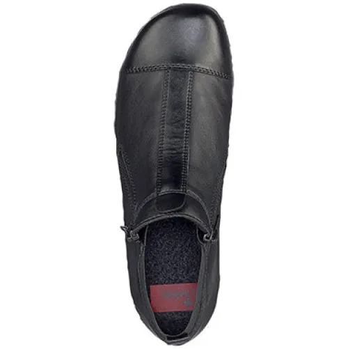 Dejlig støvlet med en overdel af glat skind og syntet. Støvlen lukkes med to lynlåse i siderne, så den kan åbnes meget op, og foden dermed nemt kan træde i den. Åbningen har en elastikkant om hælen samt en trækfane. Støvlen er foret med blødt tekstilfoer og har en indersål i filt, som kan tages ud. Den fleksible gummiydersål er stødabsorberende med et fint fodfæste.