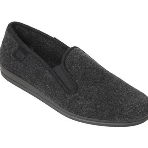 Komfortabel hjemmesko med elastik i siderne. Overdel i filt, og bløde, fleksible såler.