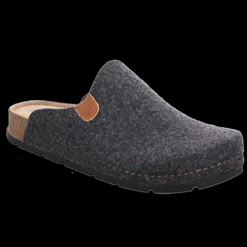 Lækker og stødabsorberende slippers-hjemmesko med en overdel af filt med skindlap med logo foldet om kanten af åbningen. Hjemmeskoen har en blød indersål af memory foam beklædt med ruskind, og ydersålen giver et fint fodfæste.