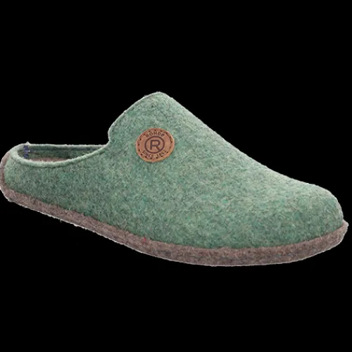 Flot hjemmesko i Rohdes klassiske stil, lavet af filt, nærmere bestemt softfilz ‘recycled PET’. Et rundt logo af læder på vristen understreger hjemmeskoens stil. Den komfortable indersål kan tages ud, og små gummicirkler på ydersålen hjælper til et bedre fodfæste.