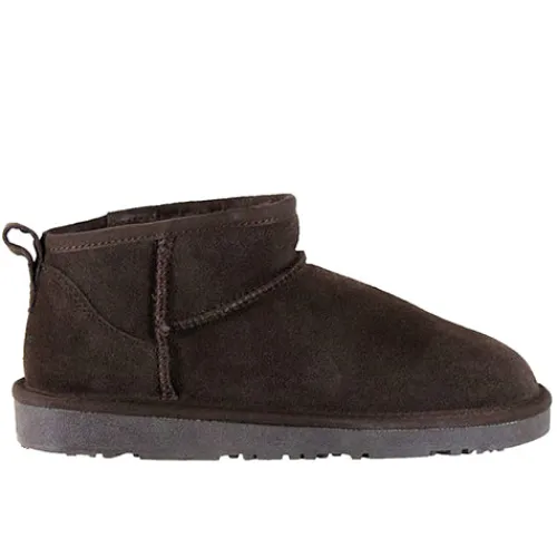 Dejlig Bondi Mini bamsestøvle i en lav model lige til at træde i. Den vandafvisende overdel er af ruskind med smarte syninger og en trækfane bagpå. Indvendig har støvlen et varmt foer af polyester og 60 % uld. Den robuste gummiydersål er stødabsorberende med et godt fodfæste. Vi anbefaler, at du jævnligt sprayer støvlerne med vandafvisende imprægnering, f.eks. Kaps Protector